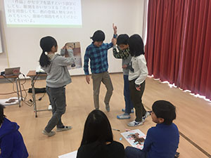 鑑賞教室にて ポーズを真似て鑑賞する子ども達