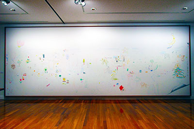 大きな額に縁取られた画面内に訪れた方にご自由にお描きいただき、ひとつの作品として、物語を積み重ねていっていただく趣向です。
