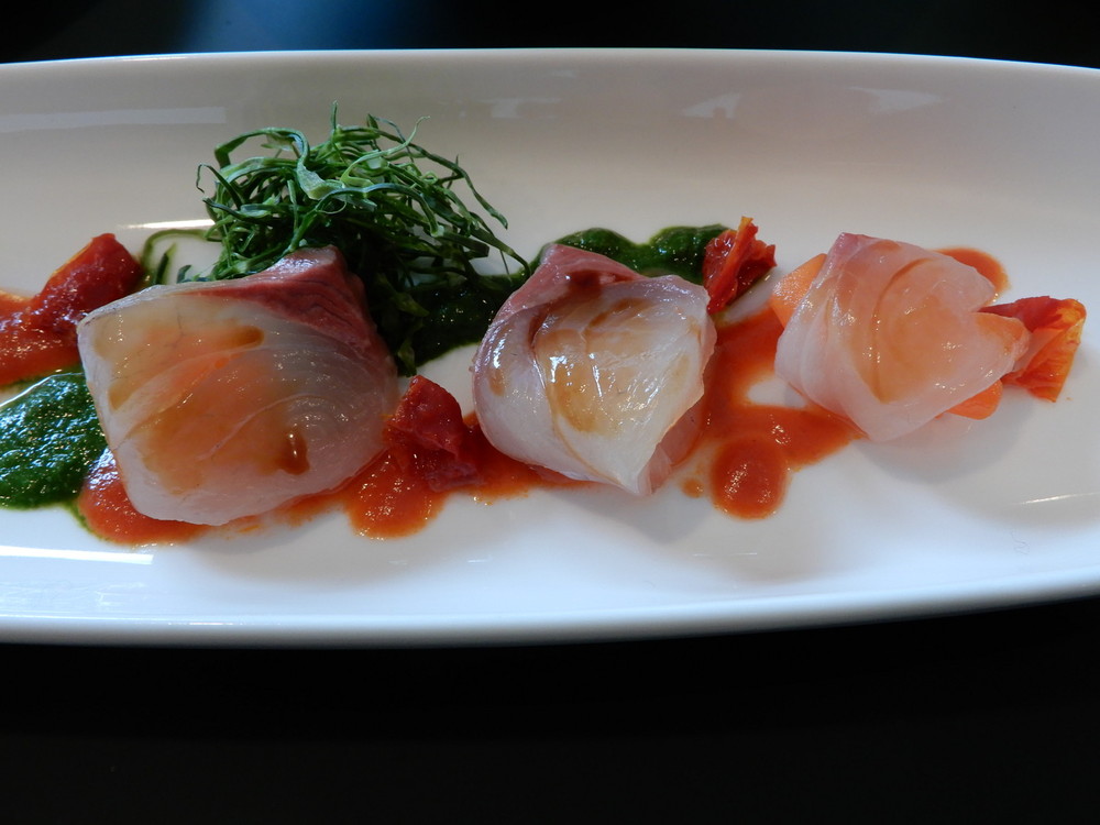 今回のコラボ・メニューは、髙山辰雄の出身地である大分から取り寄せた食材をふんだんにつかったコースです。