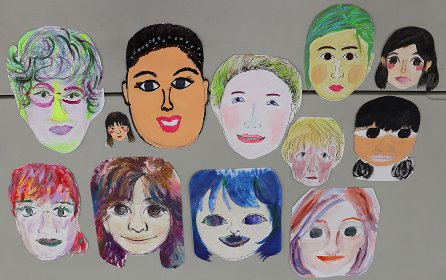 小池アミイゴさんの独特なナビゲートのもと描き進めていくと、みんなずいぶんと個性的な似顔絵に…。