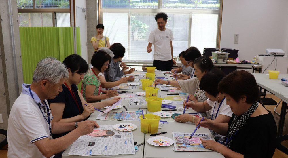 最後は、参加者全員のカラフルな完成品をならべて愉快に笑い、大いに盛り上がりました。
