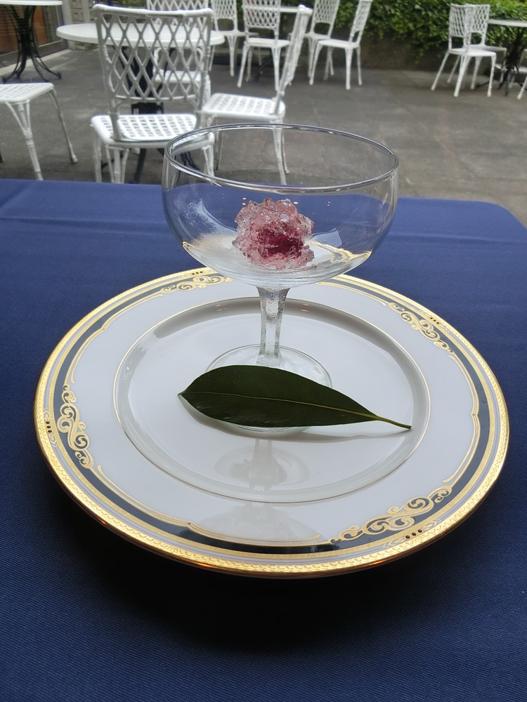 まずは、アミューズとして、“果物王国”・岡山ならではのヤマモモのコンポートのジュレから。