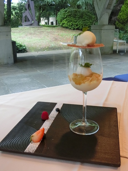 美術館の併設レストラン「ル・ジャルダン」では「高橋秀+藤田桜――素敵なふたり」展の会期中、展覧会のコラボメニューとして、蒸し暑い夏でも食欲がすすむ、爽やかな香りと口当たりのお料理で構成した素敵なコースをご用意しています。