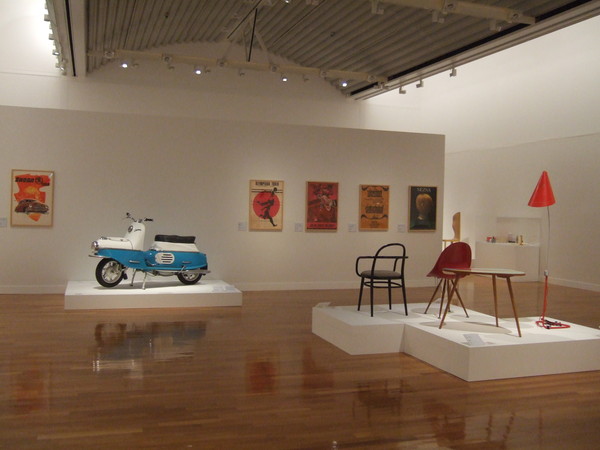 第6章 1950年-1960年代のコーナーでは、スクーター、電話、掃除機など、当時の生活で使われていた日用品のデザインを紹介しています。曲線が魅力的なネコやサギの陶器の置物もご覧いただけます。