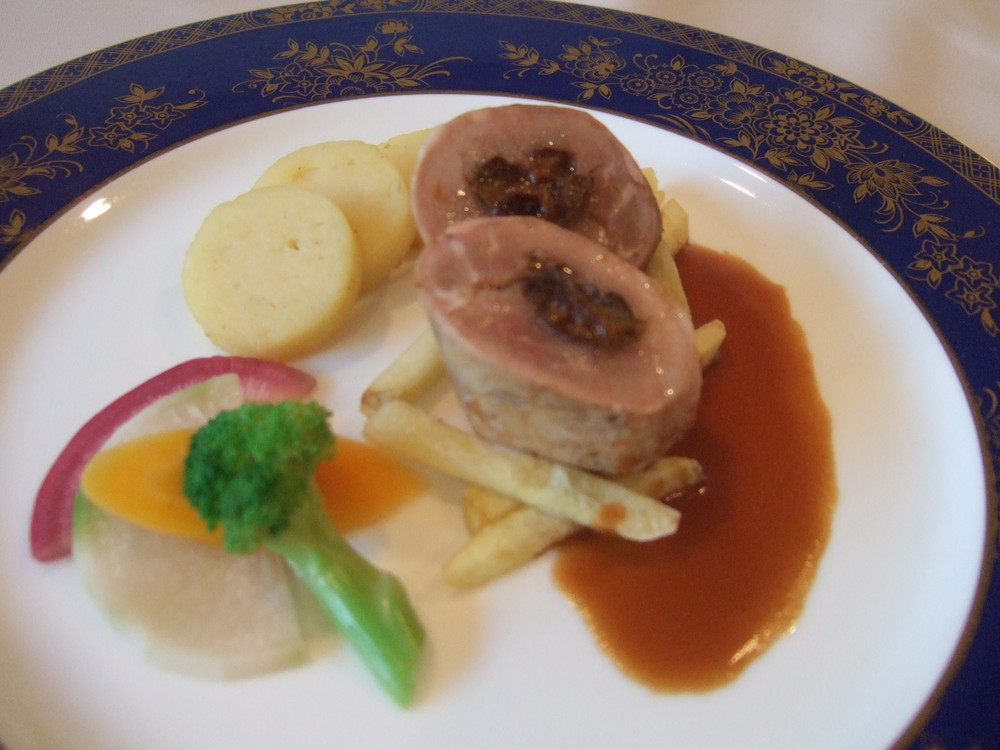 更に、そんな、チェコ人たちが、絶賛したのが、メインのプレートの《プルーンを詰めた仔牛のクレピネット クネドリーキ添え》。