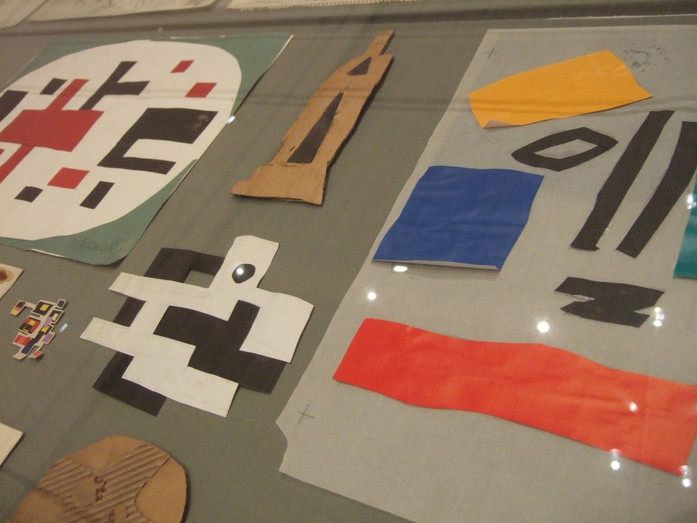 展示ケースの中には、素描や水彩、貼り絵が展示されています。村井の多彩な造形の魅力に迫ることができます。