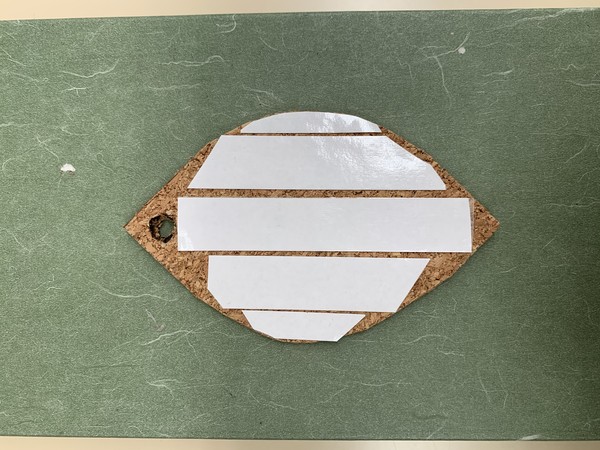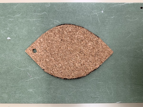 4. コルクを切り抜く。ヒモを通す場合はここで穴を開ける(⑥)