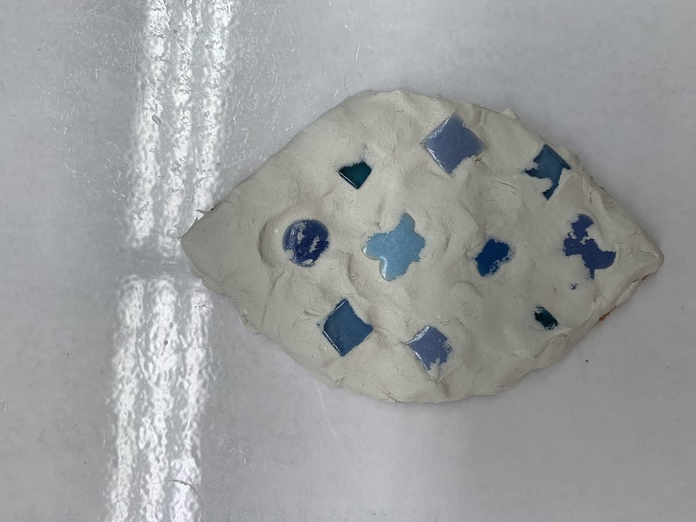 ※材料写真の左のカラフルなもの。教材用の画材で、樹脂でできた厚さ1mmの板。手で簡単に割ることができます。色は14色。ネットショップで購入できます。