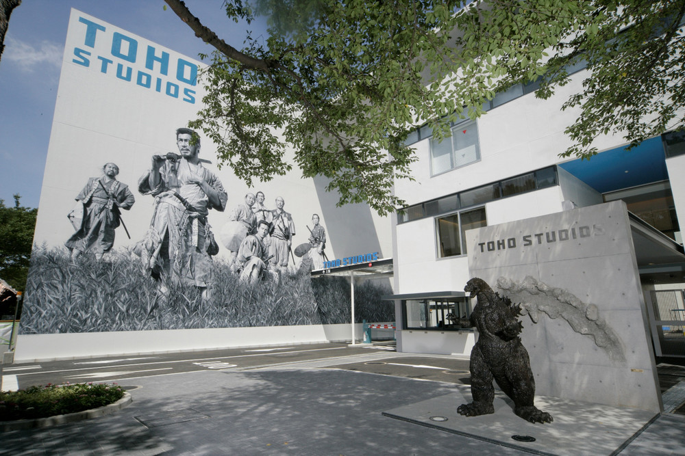 小田急線の成城学園前駅を下車して、南口の住宅街をまっすぐに歩いて行くと、10分ほどで東宝スタジオが見えてきます。2000年代から撮影所のリニューアルが進み、ハリウッドのスタジオにならって、日本で最新の映画設備を誇る最大級のスタジオへと変貌をとげました。巨大な外壁にはこの地で誕生した「七人の侍」と「ゴジラ」が描かれています。また、入り口にはゴジラのブロンズ像も設置されました。日本映画ファンには、世田谷は、知る人ぞ知る映画の聖地なのです。