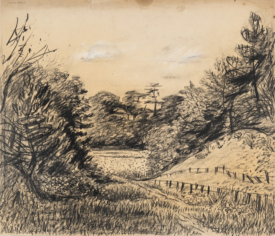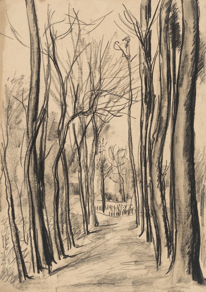久保一雄《不詳(砧界隈風景・並木)》1937年頃