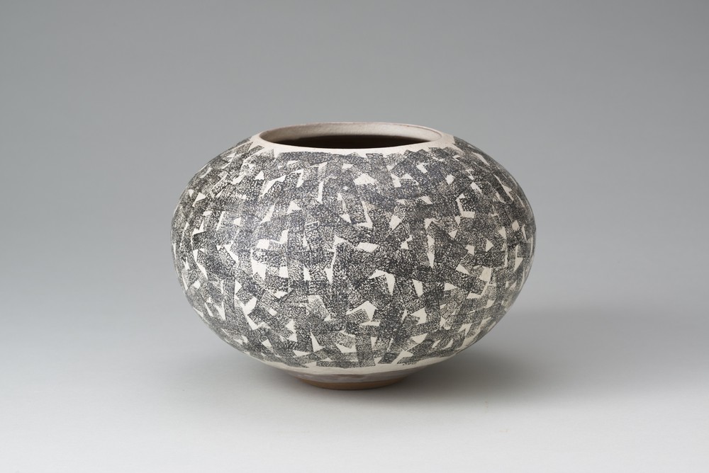 最後にご紹介するのは、映画監督の成瀬巳喜男が旧蔵していた鈴木治(1926年-2001年)の陶芸作品です。京都に生まれた鈴木治は、轆轤(ろくろ)の名手として知られた父のもとで育ち、終戦後に陶芸家を志して活動を始めました。1948年に八木一夫、山田光、鈴木治ら京都の若手作家による前衛陶芸家集団「走泥舎(そうでいしゃ)」が結成されます。器の口を閉じた用途を持たない陶芸作品の出現は、陶芸の分野において革新的な出来事でした。世田谷美術館ではすでに鈴木の《春ノ木・萌芽》と《冬ノ木・待春》(ともに1997年)を所蔵しており、このたび初期の貴重な作例としてコレクションに加わることになりました。