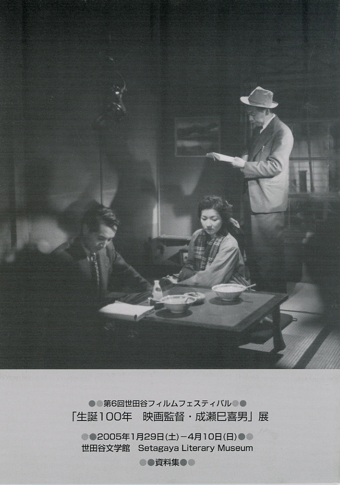 さて、この作品の寄贈者は映画監督・成瀬巳喜男のお孫さんにあたる成瀬有氏です。成瀬監督は、世田谷にP.C.L.が誕生した頃に、「小津は二人いらない」と松竹の撮影所長に言われて移籍した映画監督でした。世田谷に居を定めて、女性の哀歓を描いた文芸映画の名作を次々と発表、成城が終の棲家になりました。世田谷文学館では、2005年に「〈第6回世田谷フィルムフェスティバル〉生誕100年 映画監督・成瀬巳喜男」が開かれ、展覧会とともに上映会やトークショーが行われました。文学館に成瀬監督の映画資料が収蔵された折、旧蔵の美術品は美術館で収蔵することになりました。《黒絵壺》は黒いスタンプ状の文様から推測すると1954年頃の制作と考えられます。成瀬監督の遺品であることは確かなのですが、残念ながらその来歴は不明です。この頃に成瀬監督は代表作となる「浮雲」(1955年1月公開)を製作し、国内の映画賞を総なめにしました。セリフを最小限にそぎ落とした映像美は、小津安二郎に「大人の鑑賞に十分耐える。大変なもんだ。(中略)今迄の日本映画の最高レベルを行ってるよ」と言わしめた作品でした。
