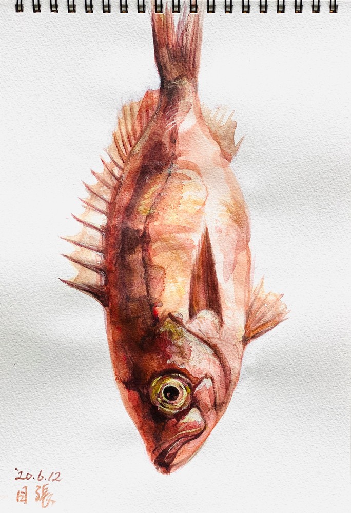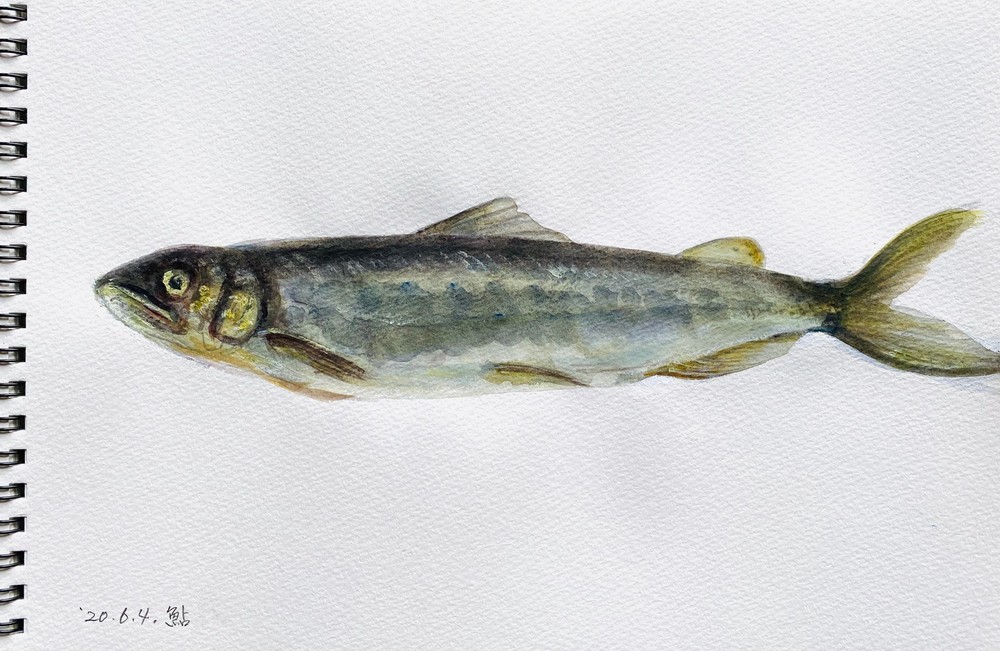 着彩クロッキー:三宅一樹 《鮎図》アクリル