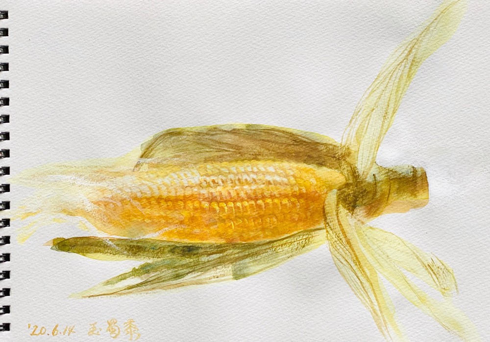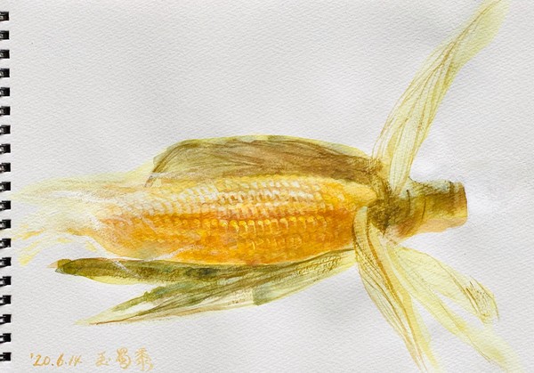 着彩クロッキー:三宅一樹 《玉蜀黍図》アクリル