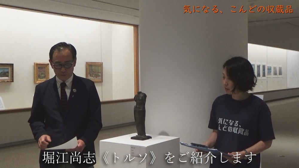 動画配信「世田美チャンネル」vol.7は、ミュージアム コレクションⅠ「気になる、こんどの収蔵品」の展示室より、堀江尚志の《トルソ》をご紹介いたします。寄贈者である岩本昭氏のこと、また岩本氏の作品への思いを、著書『わたし流美術館』(三好企画、1993年)を通してご紹介します。