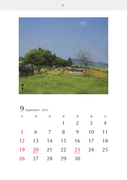 カレンダー 9月 《甘橿丘遠望-橘寺境内より》[奈良…