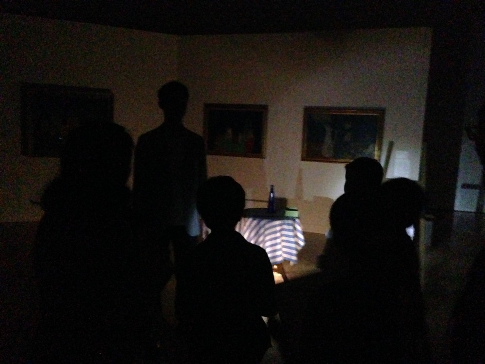 このイベント、もともと当館のボランティア=鑑賞リーダーからの提案で始まりました。動物園で夜に活動する動物たちを見るのと違って、窓もない美術館の展示室というのは、昼だろうが夜だろうが、基本的に変わりはないのです。違いがあるとすれば、他にお客様がいないこと。つまり、貸切であることです。