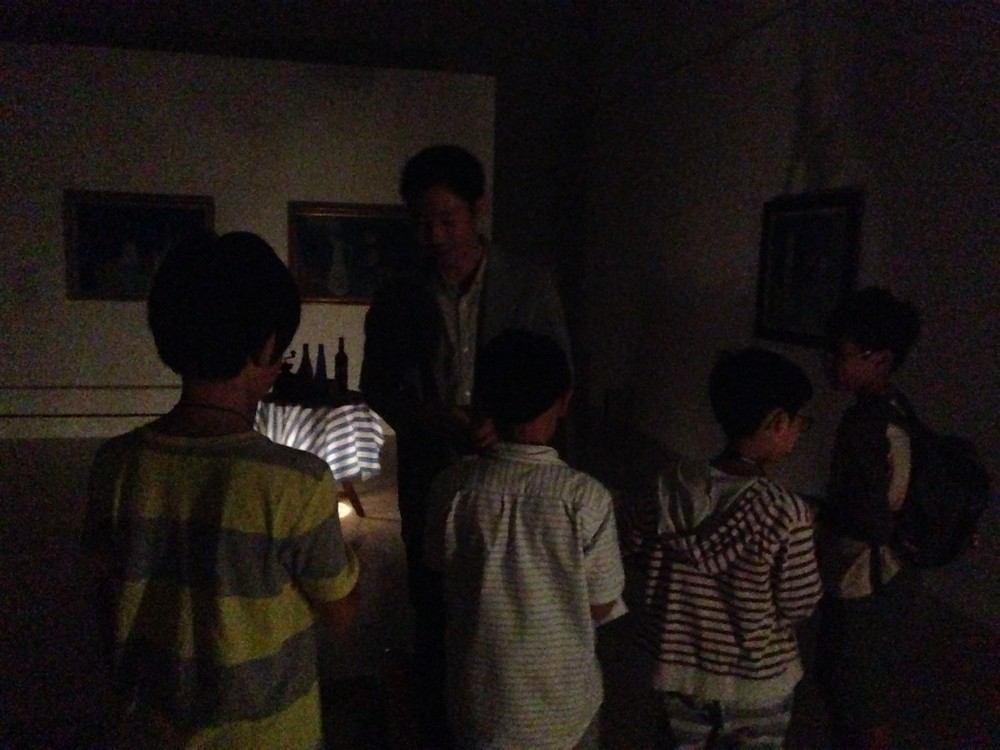 鑑賞リーダーからよく聞く不満は、子どもたちを案内するときに感動の声すら遮らなければならないこと。さわっちゃいけない、はしっちゃいけない、大きな声でさわいじゃいけない、この3大タブーのうち、3つ目だけは夜の美術館では許されるのです。年に一度、思いっきり子どもたちに美術館を楽しんでもらうのが、当館のナイトツアーです。ゲーム感覚で謎を解きながら、作品の本質を味わっていく、という特別な鑑賞ツアーなのです。