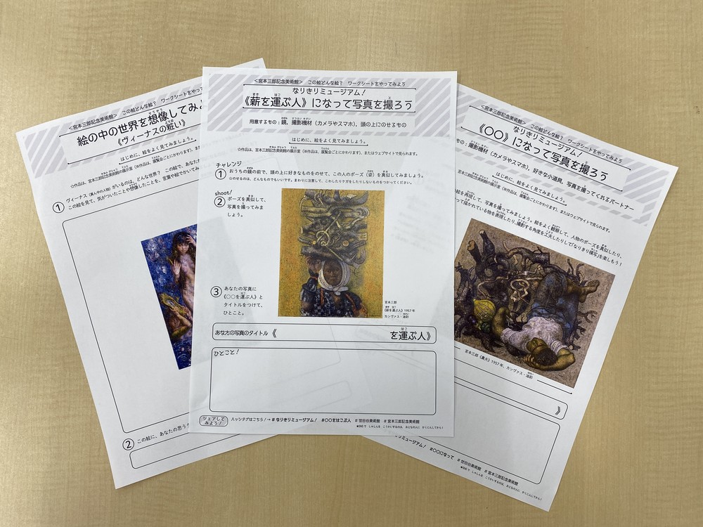 ※2 ワークシートは、2020年8月1日から10月4日まで、宮本三郎記念美術館にて配布、およびウェブサイトで公開し、チャレンジしてくれた方の写真やコメントを募集しました。現在は、受付を終了しています。