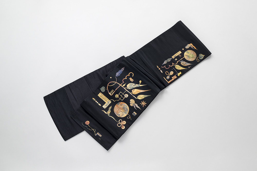 向井が油彩に箔押しを施した帯 1932年頃