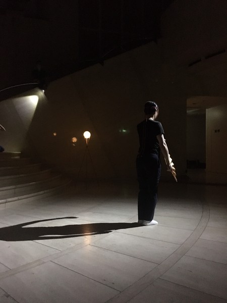 ルカさんに加え、パートナーである美術家・吉田萠さんとも意気投合し、2018年には当館の「ブルーノ・ムナーリ」展のための新作パフォーマンスを委嘱。その直後から、今回の「夢の解剖―猩々乱」プロジェクトが始動しました。架空の動物「猩々」がほろ酔い気分で水上で舞う、という趣向の演目を、橋掛りのような廊下、水紋のような意匠をもつ当館の白い空間に置いてみる――さあどうなるでしょうか。