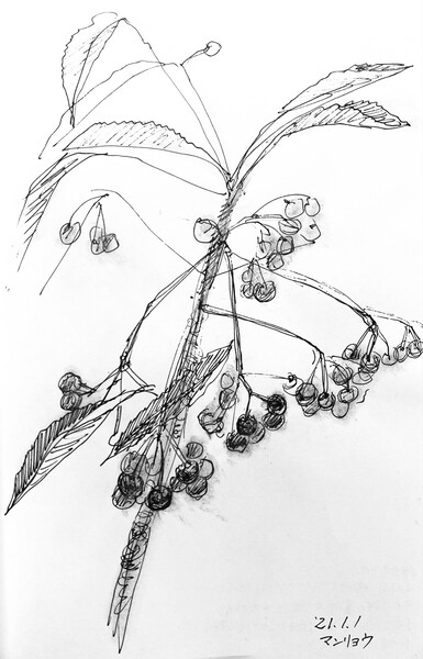 三宅一樹:クロッキー《マンリョウ》 ボールペン