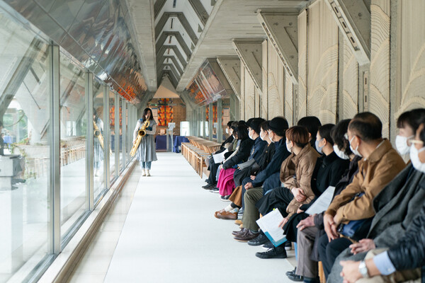 美術館からレストランへ続く廊下でのパフォーマンス。(…