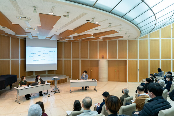 滞在報告会(トーク)にて、右から額田大志、米原晶子、…