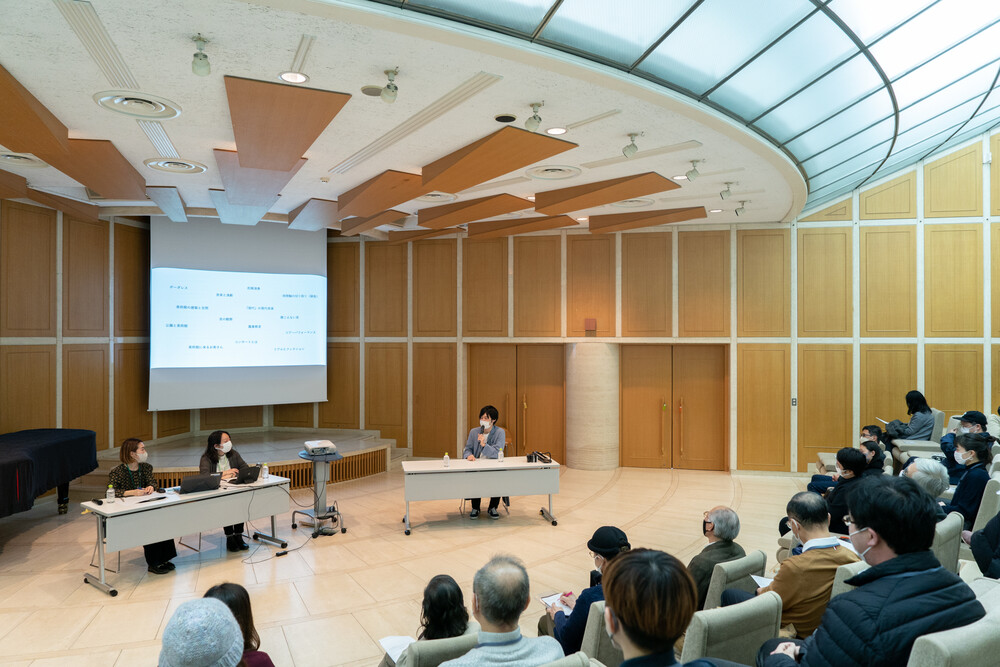 ●滞在日誌 2022/11/29(1日目)いよいよスタート!約1ヶ月経ち、滞在2-3日目(2022年12月20-21日)は、じっくりと一人でリサーチに取り組んだ初日とは打って変わって、当館によく訪れる方々との交流の機会を設けました。当館の鑑賞リーダー(美術館ボランティア)やインターンの大学生に向けて、額田さんのこれまでの活動や滞在中のプランについてお話ししていただきました。鑑賞リーダーの中には音楽への関心が高い方も多くいらっしゃり、額田さんとお話が尽きない場面も。また額田さんが世田谷区出身で、小学生の時に「