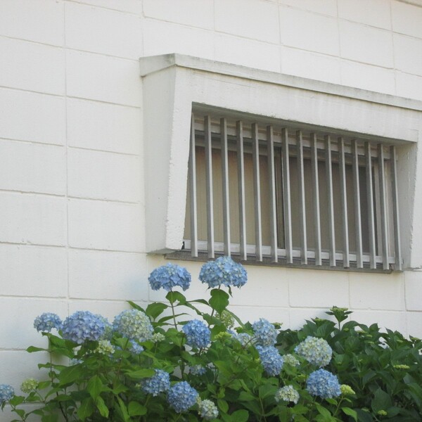 白壁と紫陽花