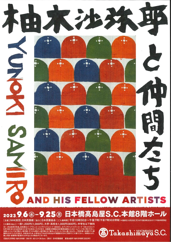 そして、当館の展覧会の会期とほぼ同時期の9月6日(水)から9月25日(月)まで、日本橋髙島屋S.C.本館8階ホールで「柚木沙弥郎と仲間たち」が開催されます。