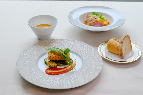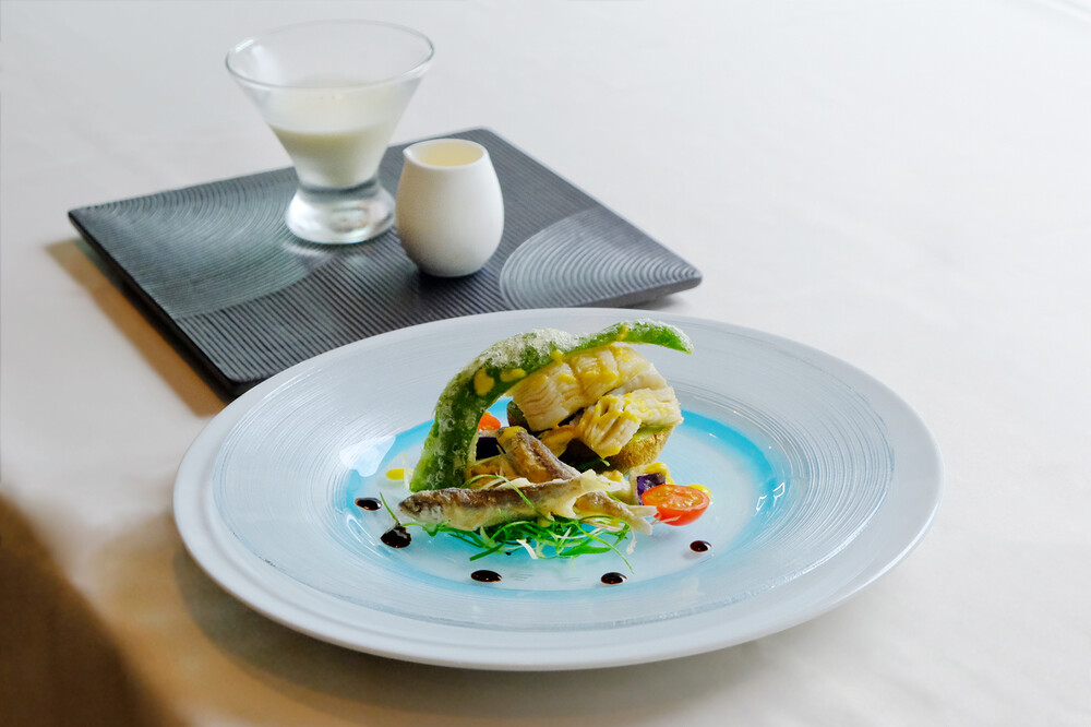 美術館の併設レストラン「ル・ジャルダン」では、「須田国太郎の芸術――三つのまなざし」展の会期中、企画展とコラボした期間限定メニューが登場します。須田国太郎の軌跡を辿ったコース料理で、出身地である京都、そして留学していたスペイン・マドリードを意識した、旬の食材やその地方の料理を取り入れた夏らしいメニューとなっています。
