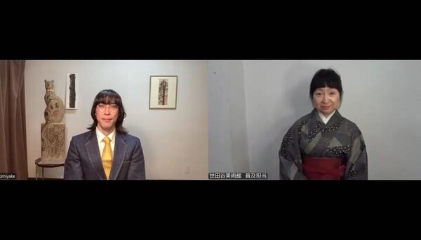 講師は彫刻家の三宅一樹氏、聞き手は当館普及担当の東谷です。