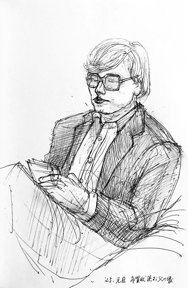 三宅一樹 描き初めクロッキー《年賀状読む父の像》