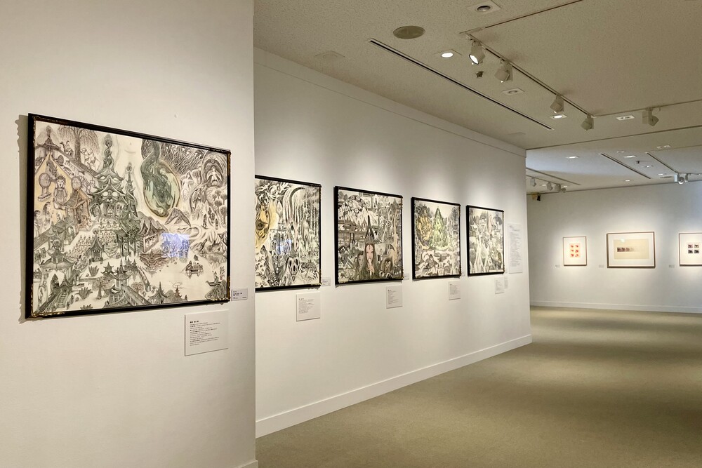 Hagiwara Sakumi (b. 1946) and Enomoto Ryoichi (b. 1947), who met while they were involved in Terayama Shuji’s theatre company, published a magazine called Bikkuri House (Fun House) in the 1970s and ’80s. This exhibition focuses on works by Hagiwara, who made films, photographs, prints, and artist books, and Enomoto, who transcribed the entire text of Shibusawa Tatsuhiko’s novel Takaoka shinno kokai-ki (The Travels of Prince Takaoka) and made illustrations for it.