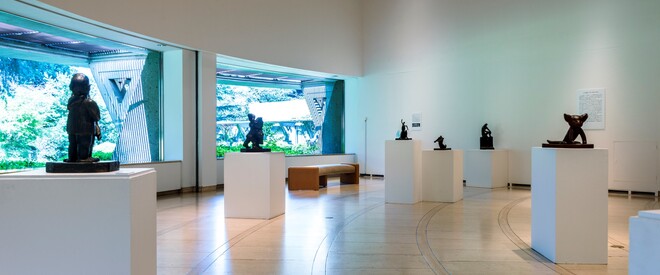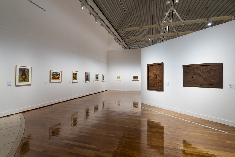 Beginning in 1929, HIJIKATA Hisakatsu (1900–1977) lived for over ten years on the South Sea islands of Palau and Satawal, and created sculptures and paintings dealing with the lives and customs of the local islanders. Meanwhile, YUNOKI Samiro (b. 1922), was influenced by the Mingei folk craft movement and the dyeing artist SERIZAWA Keisuke to pursue a career in textile dyeing. Even after reaching his 100th birthday, Yunoki actively creates works that are inspired by interesting and enjoyable things in everyday life. This exhibition, largely drawn from the museum collection, introduces the two artists’ highly versatile creations including paintings, sculptures, and picture books.