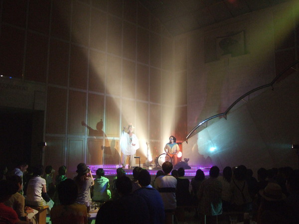 当館エントランス空間を、若手アーティストの実験的パフォーマンスの場にするシリーズ第4弾。世にも不思議な「倍音唱法」を自在にあやつる2人が時空を歪ませ、お客を宇宙に連れて行く?!ヴォイス&パーカッションのめくるめく一夜!