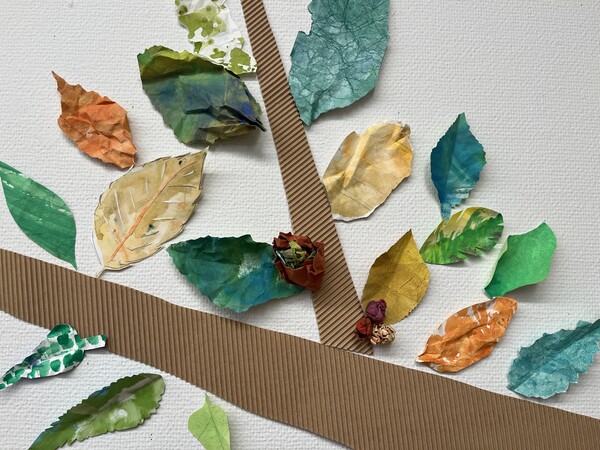 来場者が思い思いの葉っぱを描き、展示室の壁一面をセタビの森にします。
