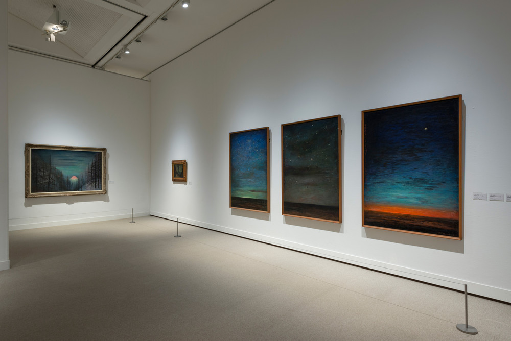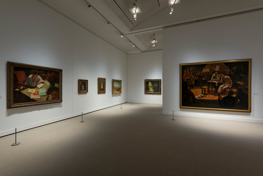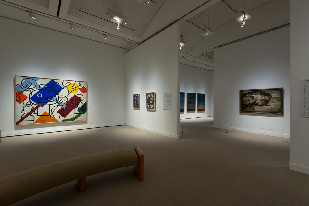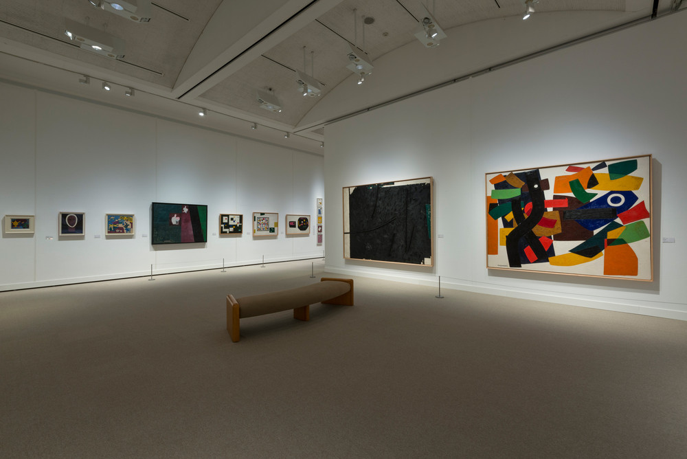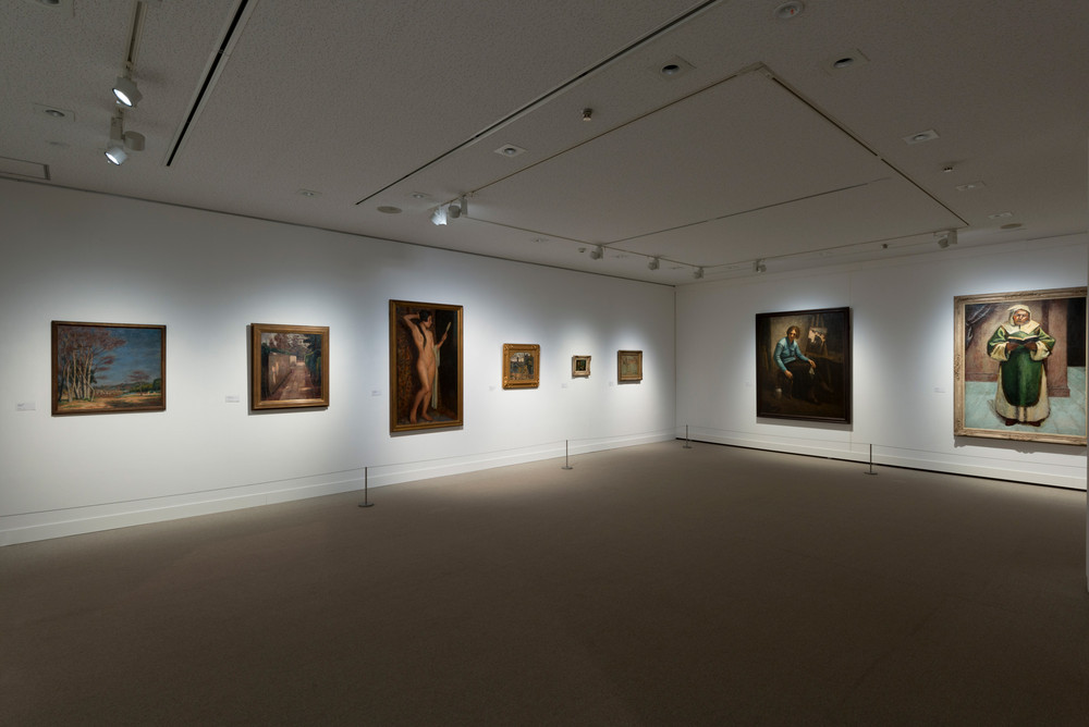 ふたりは同じ時代を生き、奇しくも同時期にパリで学んでいますが、互いに深く交流することはなく、小堀は具象、村井は抽象と、それぞれ異なる表現で創作を重ねました。小堀は1935年の帝展改組を機に官展を離れ、以降、孤高ともいえる道を歩みます。いっぽう、村井は、当時まだ日本では馴染みの薄かった抽象表現の道を進み、難渋しつつも、戦後はモダンアート協会を設立するなど、自ら活動の場を切り拓いていきました。画壇に属さず、作品を売ることもせずに、ひとり制作に打ち込んだ小堀と、画家仲間とともにグループを設立して淡々と作品を発表した村井の生き方は、対照的に見えながらも、共通した時代の陰影を感じさせます。