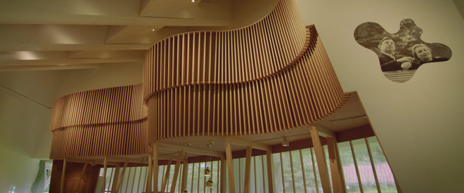 やがて国際的潮流となった合理主義的なモダニズム建築の流れのなかでも、ヒューマニズムと自然主義の共存が特徴として語られるアアルト建築は、独自の立ち位置を築きました。実用性や機能性を重視するモダニズムの理論は、ふたりのヴィジョンとも重なるものでしたが、夫妻は自国フィンランドの環境特性をふまえ、自然から感受した要素をモティーフとしたデザインを通じ、彼らなりの答えを探求していきます。アイノは54歳という若さで他界しますが、ふたりが協働した25年間は、かけがえのない創造の時間となりました。