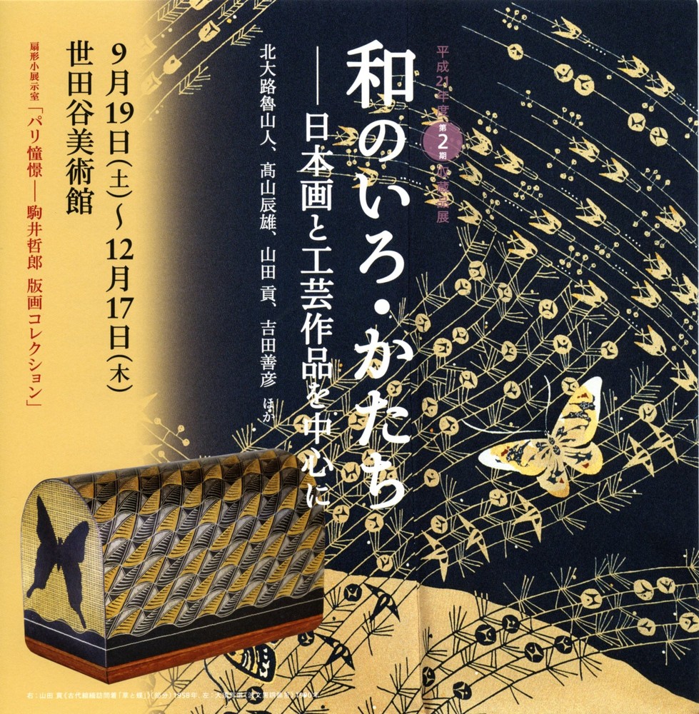 高山辰雄、吉田善彦などの日本画の作品と北大路魯山人、世田谷ゆかりの工芸家の作品を紹介します。特に今回は、世田谷ゆかりの友禅の重要無形文化財保持者(人間国宝)・山田貢の着物などの作品とともに、小下図や原寸大図など関連資料も展示し、知られざる氏の制作過程の一端に触れます。