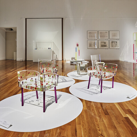 造花の薔薇を透明アクリル樹脂に封じ込めた「椅子」、板ガラスを組み合わせただけの「椅子」、大きさを少しずつ変えて格子状に49個並ぶ「引出し」、7本の針を持つ「時計」。一目見た時に驚きがあり、そして笑みがこぼれ、しばらくして、その機能がきちんと保持されていることに気づきます。倉俣史朗(1934-1991)は、このような一風変わった家具と数多くの特色あるインテリアデザインを手掛けました。1965年に独立し自身の事務所を構え、同時代の美術家たちとも交流をしつつ、機能性や見た目の形状に主眼を置いたデザインとは異なった考え方をした作品を発表し続けます。1980年代にはイタリアのデザイン運動「メンフィス」に参加し、その名は一躍世界中に浸透していきました。倉俣の作品は各国の美術館に収蔵されており、今なお国内外で高い評価を受けています。没後30年を経て開催する本展覧会では、家具やインテリアの仕事に加えて、創作の源泉を垣間見せるかのようなイメージスケッチや夢日記も紹介し、倉俣語録とも言われた作家自身の言葉を手がかりに、独立する以前からあまりにも早すぎる死までを振り返ります。倉俣史朗の作品とその人物像に新たな視線を向けることは、デザインの可能性を再認識する機会ともなるでしょう。