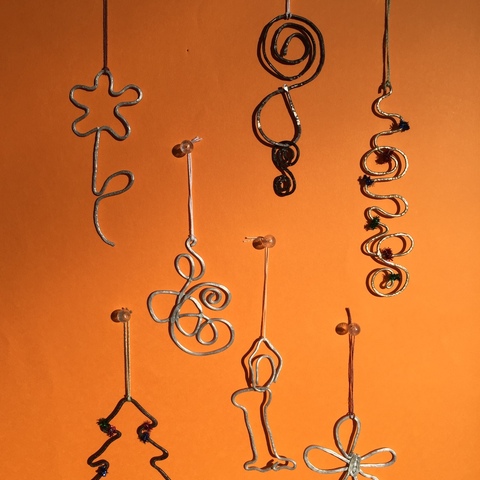 金属ワイヤーで形を作り、叩いて仕上げ、オーナメントにします。