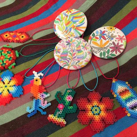 メキシコの美しい伝統民芸品をヒントにカラフルなストラップとカンバッチを作ります。