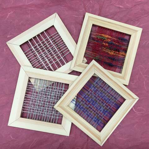 糸をタテとヨコに組み合わせて、ミニ織物を作ります。