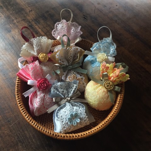 企画展毎に、様々な趣向を凝らした内容で、子どもから大人までその場で楽しめる簡単な工作などを行う100円ワークショップ。この度は、魅惑的なレースやリボンに好みの香りをあわせてサシェ(匂い袋)を作ります。