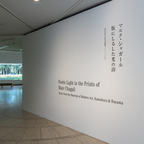 詩情あふれる世界を幻想的で色彩豊かに描いた愛の画家マルク・シャガール(1887-1985)。帝政ロシア領ヴィテブスク にユダヤ人として生まれ、戦禍や革命に翻弄されながらパリやベルリン、ニューヨークヘと活動の地を移した異邦人 画家という境遇も、作品に陰影を与えその妙味を奥深いものにしています。シャガールは絵画のかたわら版画制作にも精力的にとりくみ、約2,000点もの作品を手がけるなど、版画の分野でも 大きな足跡を残しました。版元や工房との協働によって生まれる版画作品には、絵画とは一味違った表現と味わいが刻まれています。本展では神奈川県立近代美術館の望月冨昉コレクションより、『ダフニスとクロエ』や『サーカス』など各年代と技法を代表する6つの版画集から選りすぐった作品約140点をご紹介し、技法ごとの表現の違いや物語、モチーフ、制作の背景などに注目しながらその魅力に迫ります。※展覧会カタログは完売いたしました。