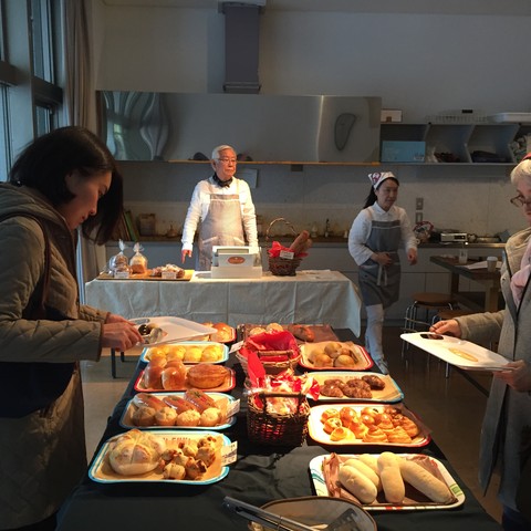 どう見てもパン屋ですが、ここは美術館です。時々、おかしなことが起きるのが地下にある創作室。この写真は当館でおこなっている「映画ワークショップ」の撮影風景です。世田谷美術館では区民のための年間講座「美術大学」を開講しています。この講座は5月から12月まで60名を対象に火曜日と木曜日の週2回、講義と鑑賞と実技を組み合わせ、総合的に美術を学ぶものです。毎年3月1日~31日募集受付をおこなっています。人気講座のため本講座の受講は1回限りとなっていますが、最近では修了生を対象とした実技講座「美術大学ステップアップ講座」も開講しています。中でも人気なのが「映画ワークショップ」。なかなか他にはない講座ですし、なにしろ、映画は一人では制作できないものですし。ワークショップは全5回で今年は19名の方が受講しました。最終的に5、6名のグループでオリジナルの短編映画を1本制作します。講師の指導はありますが、シナリオ、演出、カメラ、出演、すべて受講生がおこないます。今回の作品の共通課題は「誰かがふいに歌いだし、つられて皆も歌いだす(シーンが含まれていること/ミュージカル不可)」。この写真の映画は『パン屋大合唱』という作品です。ある日、パン屋に強盗が押し入り・・・・。さて、それがどうして「大合唱」に展開していくのか?奇想天外でちょっとほっこりするステキな映画です。まだ先になるかと思いますが、ご興味ある方は年に1回開催している「セタビ映画祭」というイベントでご覧いただけますので、どうぞその機会をお待ちください。日程はまたHPなどで告知致します。